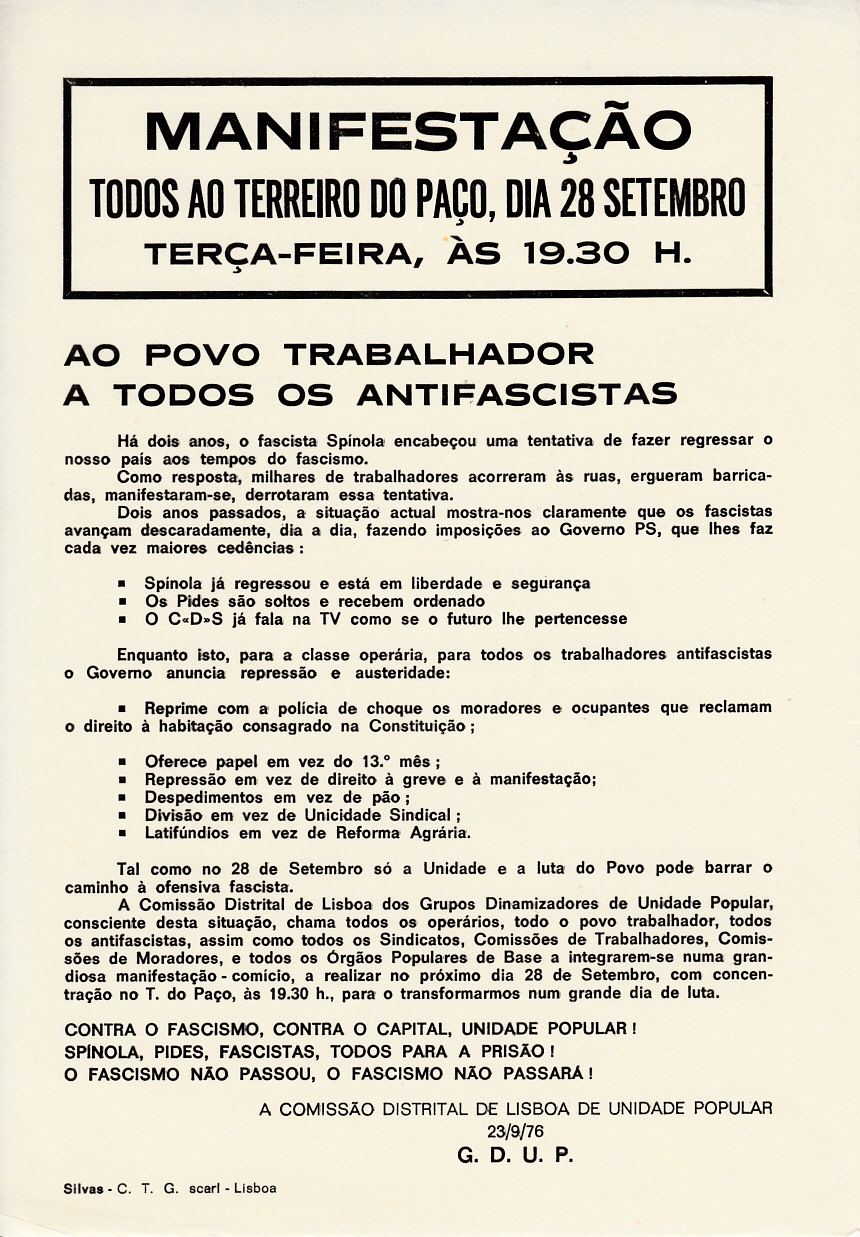 GDUPS – COMISSÃO DISTRITAL DE LISBOA 15/11/2015 JPP ARQUIVO, GRUPOS DINAMIZADORES DA UNIDADE POPULAR (GDUP), Lisboa, Panfletos - folhetos - folhas volantes - prospectos tarjetas 0 DOCUMENTOS INTERNOS Circular aos Gdups do Distrito de Lisboa Candidatos à Comissão Distrital… Print (Opens in new window) Print Email a link to a friend (Opens in new window) Email Share on Facebook (Opens in new window) Facebook Share on X (Opens in new window) X Share on LinkedIn (Opens in new window) LinkedIn Like this:Like Loading...