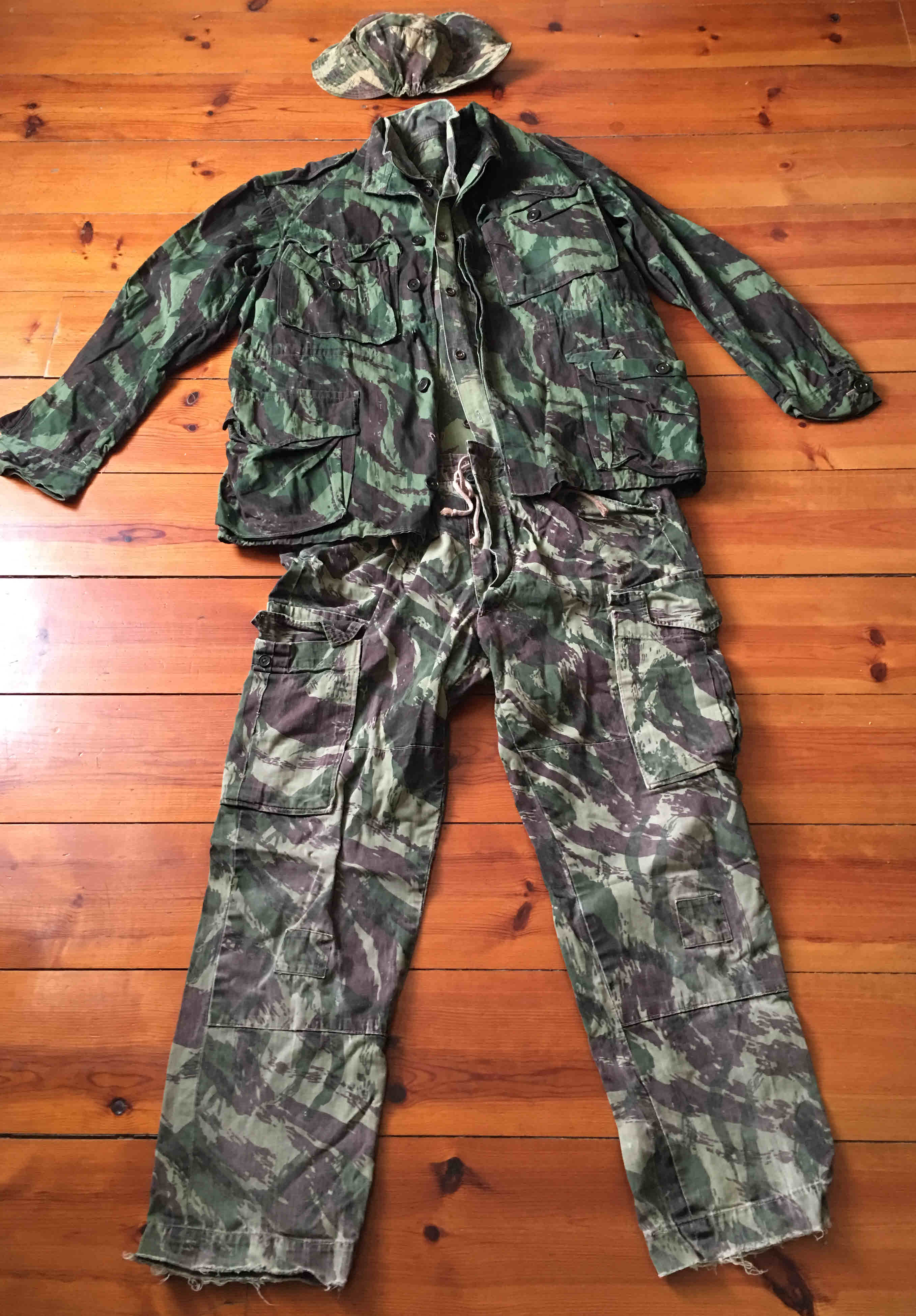 Agradeço a Jorge Henriques mais uma série de ofertas para o ARQUIVO / BIBLIOTECA . Desta vez veio algo de muito especial, um camuflado com todas as peças, usado na guerra colonial. Por coincidência veio mesmo a propósito para figurar numa exposição feita pelo NUPAE, uma instituição cultural da Vila da Marmeleira, sobre a participação local no esforço de guerra. Para essa exposição ,que terá os retratos de todos os marmeleirenses que estiveram na Guiné, Angola e Moçambique, em todos os ramos das Forças Armadas, será fornecido vário material de suporto, como o boneco do PIFAS, estandartes de regimentos e batalhões, cinzeiros, manuais militares, com origem em vários espólios de militares que se encontram no ARQUIVO.