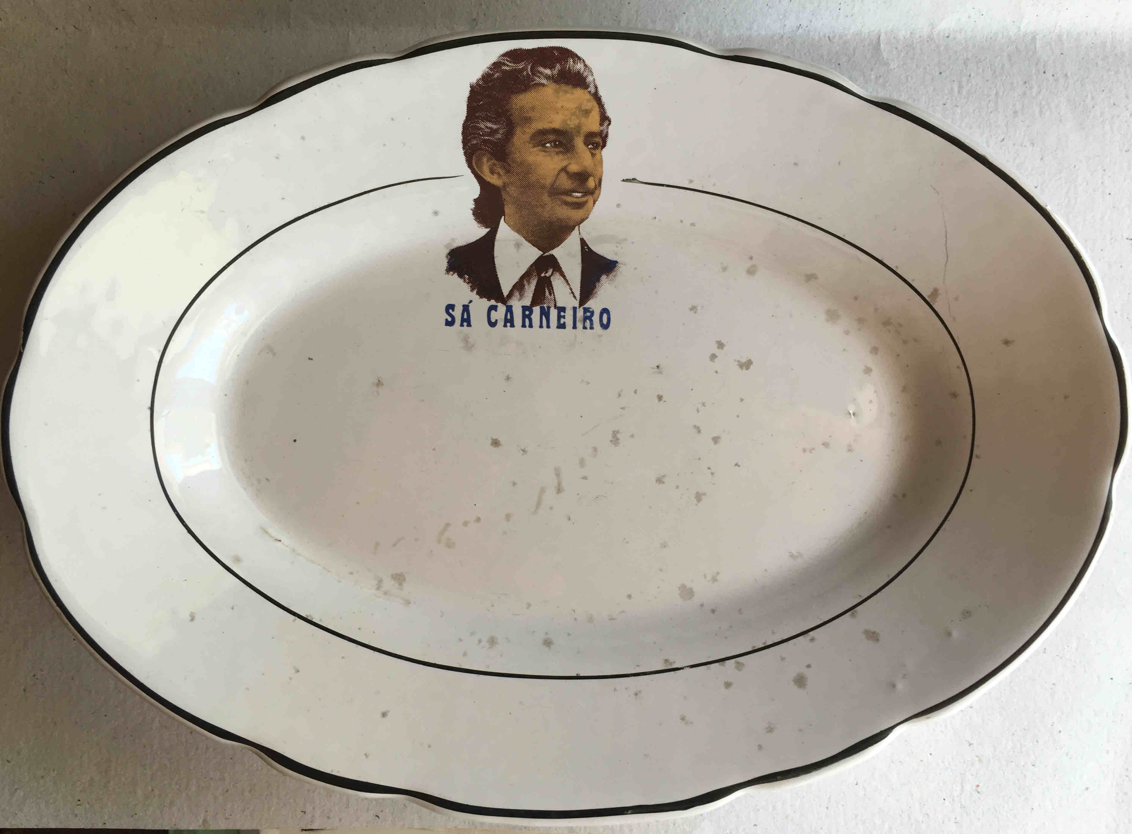 Uma travessa com a imgaem de Sá Carneiro. Embora haja muita memorabilia póstuma de Sá Carneiro, penso que esta foi feita em vida.