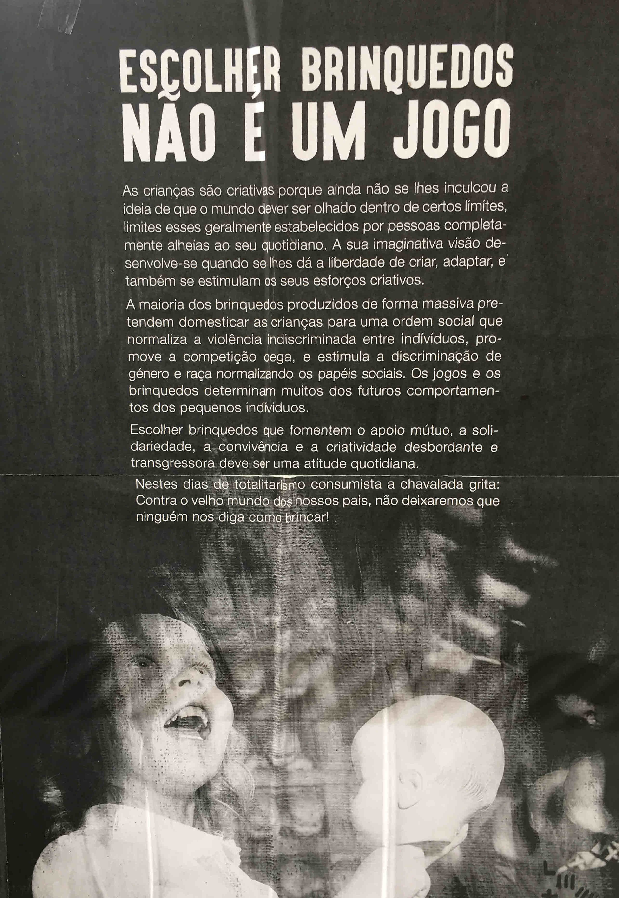 ESCOLHER BRINQUEDOS NÃO É UM JOGO (NATAL DE 2016) 04/01/2017 JPP 2016, ARQUIVO, Cartazes - faixas - outdoors, Movimentos: anarquismo 0 Print (Opens in new window) Print Email a link to a friend (Opens in new window) Email Share on Facebook (Opens in new window) Facebook Share on X (Opens in new window) X Share on LinkedIn (Opens in new window) LinkedIn Like this:Like Loading...