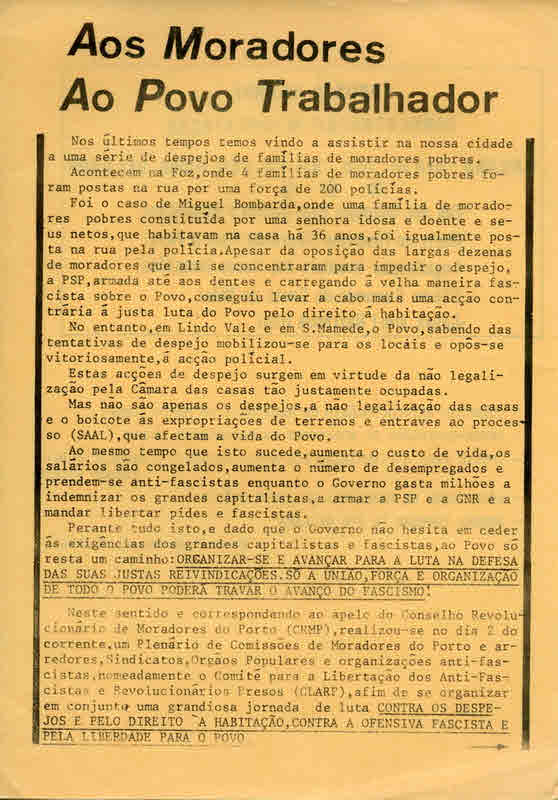 CONSELHO REVOLUCIONÁRIO DOS MORADORES DO PORTO 05/03/2017 JPP ARQUIVO, Autocolantes, CONSELHO REVOLUCIONÁRIO DOS MORADORES DO PORTO, Habitação, Panfletos - folhetos - folhas volantes - prospectos tarjetas, Porto 0 Autocolantes. Panfletos. Print (Opens in new window) Print Email a link to a friend (Opens in new window) Email Share on Facebook (Opens in new window) Facebook Share on X (Opens in new window) X Share on LinkedIn (Opens in new window) LinkedIn Like this:Like Loading...
