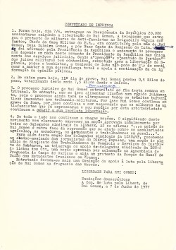 ![]() | 1977/06/09 | COMISSÃO PARA A LIBERTAÇÃO DE RUI GOMES | |||||||