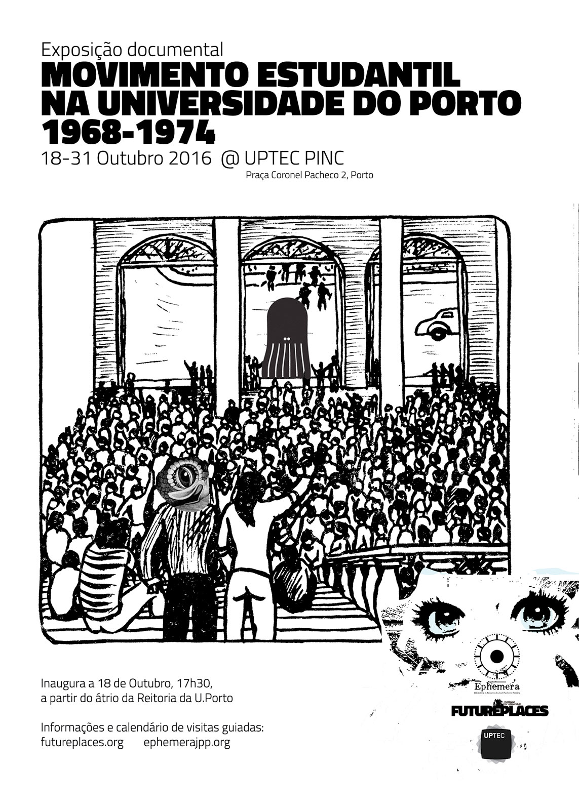 Estão finalmente escolhidos o texto final, o local e a data para a colocação da placa homenageando os estudantes da Universiade do Porto perseguidos pela Ditadura. A data será no dia 30 de Junho de 2017, correspondendo à última reunião do actual Conselho Geral, que tomou por unanimidade esta iniciativa. Faço aqui referência a este facto, porque a colocação desta placa foi um efeito da realização da Exposição sobre o Movimento Estudantil do Porto (1968-1974) organizada pelo EPHEMERA, em conjugação com o FuturePlaces -Media Lab for Citizenship.