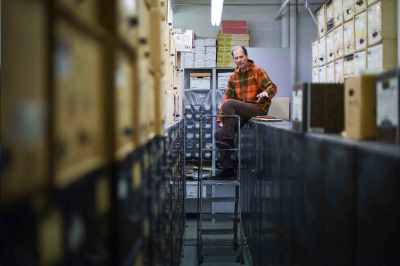 Almost everything is stored in ageless steel filing cabinets — several thousand drawers’ worth — and in sturdy cardboard bankers boxes. An assortment of bookshelves lines some of the walls.