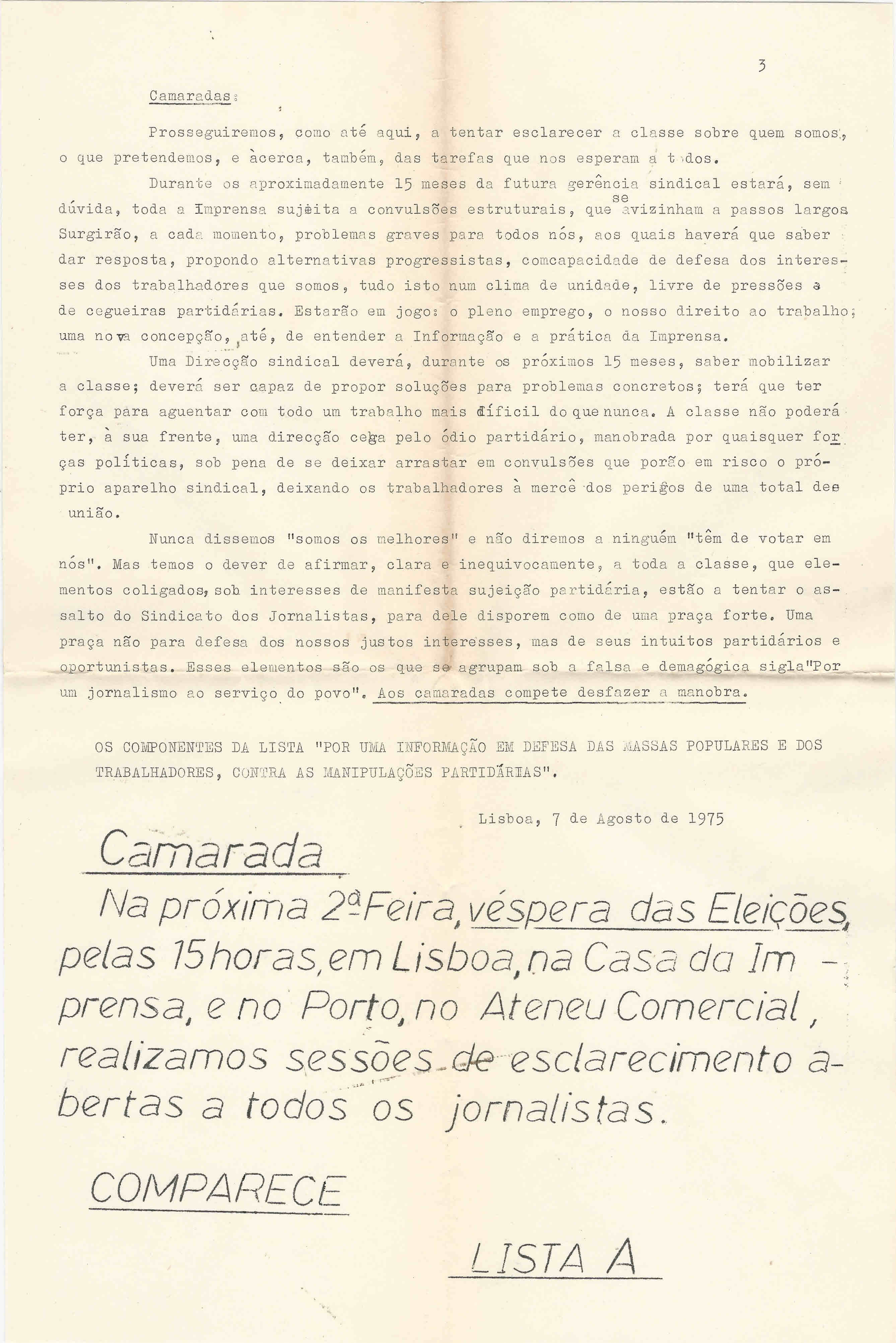 ARQUIVO CONCEIÇÃO MONTEIRO – PAPÉIS DE SÁ CARNEIRO (1974-1980)