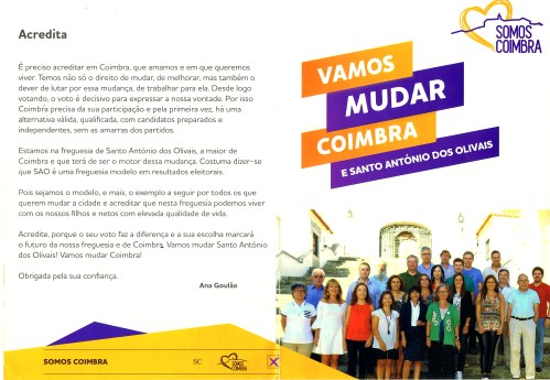 ELEIÇÕES AUTÁRQUICAS DE 2017 – COIMBRA – FREGUESIA DE SANTO ANTÓNIO DOS OLIVAIS – SOMOS COIMBRA 28/09/2017 JPP 2017 - Eleições Autárquicas, ARQUIVO, Cartazes - faixas - outdoors, Coimbra, Panfletos - folhetos - folhas volantes - prospectos tarjetas, Processos eleitorais, Santo António dos Olivais, SOMOS COIMBRA 0 Click to print (Opens in new window) Print Click to email a link to a friend (Opens in new window) Email Click to share on Facebook (Opens in new window) Facebook Click to share on X (Opens in new window) X Click to share on LinkedIn (Opens in new window) LinkedIn Like this:Like Loading...