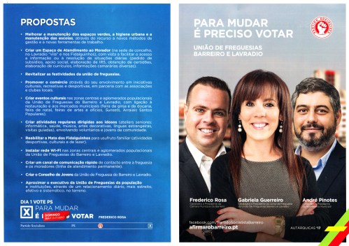 ELEIÇÕES AUTÁRQUICAS DE 2017 – BARREIRO – UNIÃO DE FREGUESIAS DE BARREIRO E LAVRADIO – PS 06/10/2017 JPP 2017, 2017 - Eleições Autárquicas, ARQUIVO, Barreiro, Cartazes - faixas - outdoors, Panfletos - folhetos - folhas volantes - prospectos tarjetas, PARTIDO SOCIALISTA (PS), Processos eleitorais, UF Barreiro e Lavradio 0 Click to print (Opens in new window) Print Click to email a link to a friend (Opens in new window) Email Click to share on Facebook (Opens in new window) Facebook Click to share on X (Opens in new window) X Click to share on LinkedIn (Opens in new window) LinkedIn Like this:Like Loading...