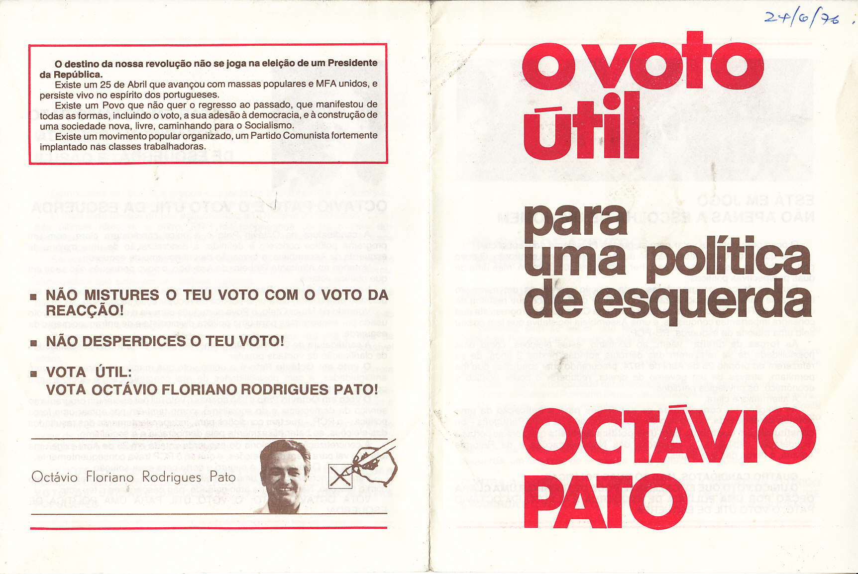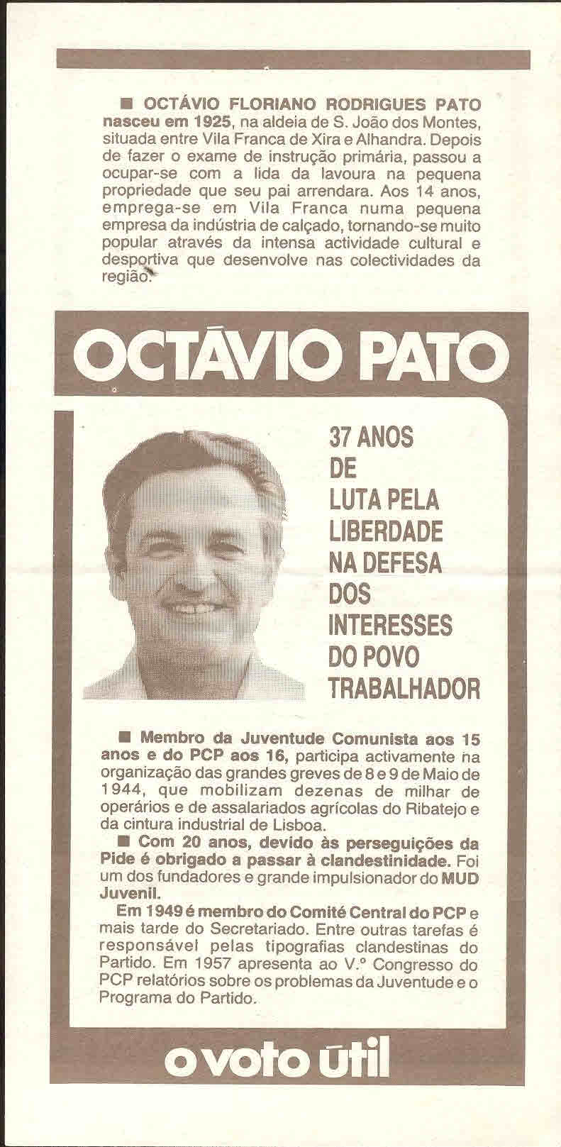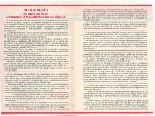 ELEIÇÕES PRESIDENCIAIS – 1976 – CANDIDATURA DE OCTÁVIO PATO 08/10/2017 JPP 1976 - Eleições Presidenciais, Autocolantes, Cartazes - faixas - outdoors, Panfletos - folhetos - folhas volantes - prospectos tarjetas, PARTIDO COMUNISTA PORTUGUÊS (PCP), Pato, Octavio 0 Cartazes. Autocolantes. (Em breve integral.) Panfletos. Print (Opens in new window) Print Email a link to a friend (Opens in new window) Email Share on Facebook (Opens in new window) Facebook Share on X (Opens in new window) X Share on LinkedIn (Opens in new window) LinkedIn Like this:Like Loading...