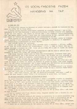 MRPP – COMITÉ DA TAP 13/10/2017 JPP ARQUIVO, MOVIMENTO REORGANIZATIVO DO PARTIDO DO PROLETARIADO (PCTP/MRPP), Panfletos - folhetos - folhas volantes - prospectos tarjetas, TRANSPORTES AÉREOS PORTUGUESES (TAP) 1 Click to print (Opens in new window) Print Click to email a link to a friend (Opens in new window) Email Click to share on Facebook (Opens in new window) Facebook Click to share on X (Opens in new window) X Click to share on LinkedIn (Opens in new window) LinkedIn Like this:Like Loading...