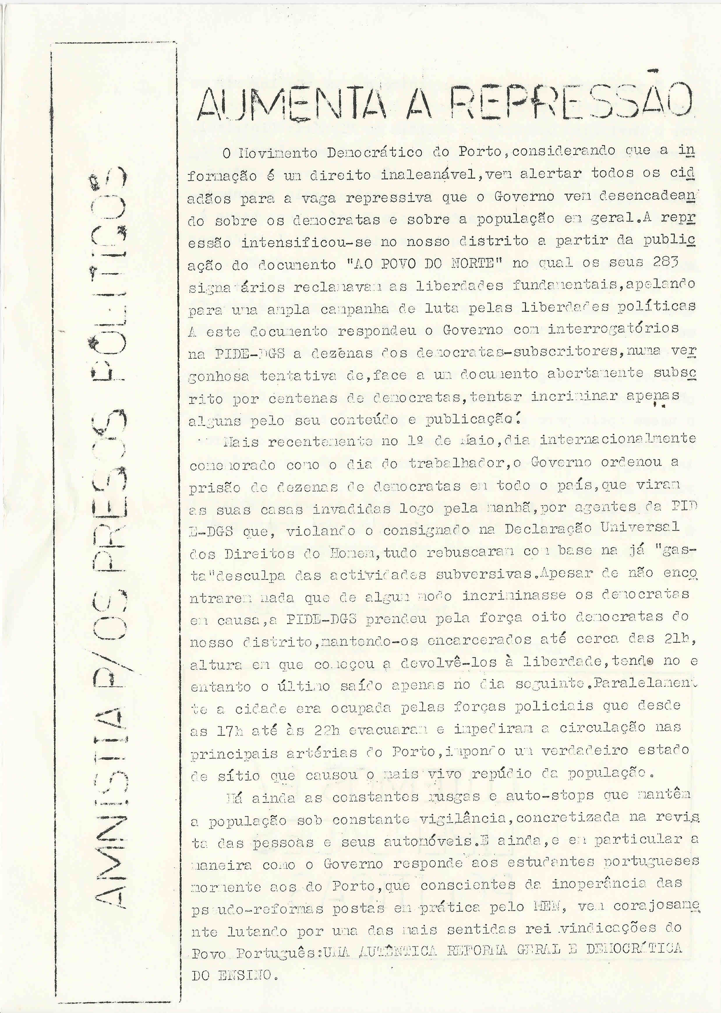 REPORTÓRIO DE DOCUMENTOS E PUBLICAÇÕES DA OPOSIÇÃO (1926-1974)