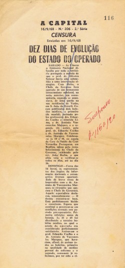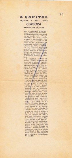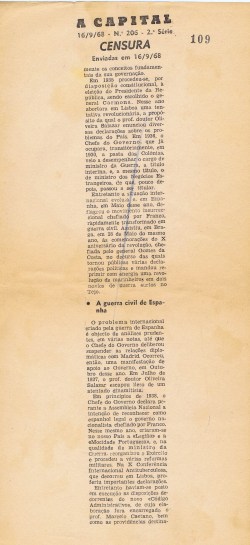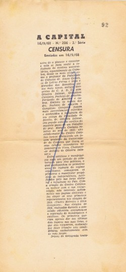 ARQUIVO DA CENSURA – A CAPITAL – PROVAS CENSURADAS DE ARTIGOS (1968) 04/11/2017 JPP 1968, ARQUIVO, ARQUIVO DA CENSURA, Capital (A), Censura 0 Print (Opens in new window) Print Email a link to a friend (Opens in new window) Email Share on Facebook (Opens in new window) Facebook Share on X (Opens in new window) X Share on LinkedIn (Opens in new window) LinkedIn Like this:Like Loading...