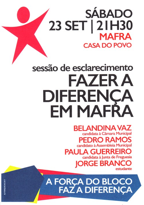 ELEIÇÕES AUTÁRQUICAS DE 2017 – MAFRA – BE 19/11/2017 JPP 2017, 2017 - Eleições Autárquicas, ARQUIVO, Autocolantes, BLOCO DE ESQUERDA (BE), Cartazes - faixas - outdoors, Mafra, Panfletos - folhetos - folhas volantes - prospectos tarjetas, Processos eleitorais 0 Autocolante Print (Opens in new window) Print Email a link to a friend (Opens in new window) Email Share on Facebook (Opens in new window) Facebook Share on X (Opens in new window) X Share on LinkedIn (Opens in new window) LinkedIn Like this:Like Loading...