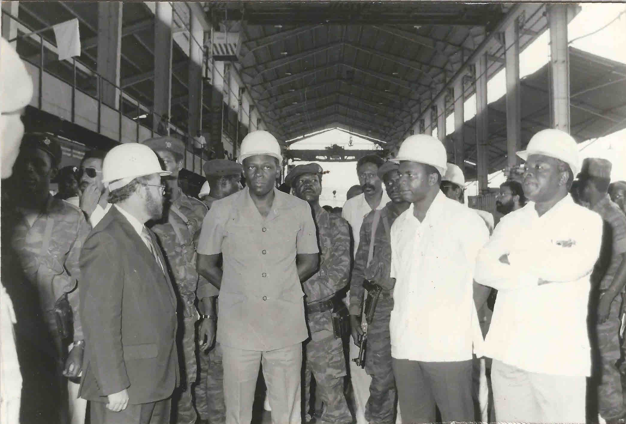 José Eduardo dos Santos visita uma fábrica.