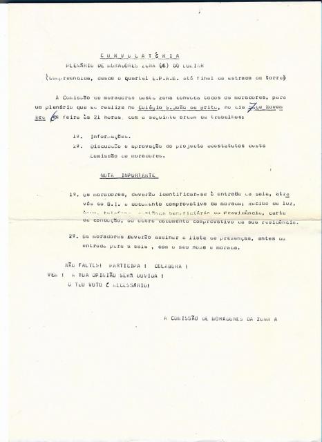 COMISSÕES, ASSOCIAÇÕES, GRUPO DE MORADORES