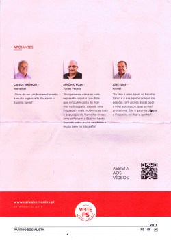 ELEIÇÕES AUTÁRQUICAS DE 2017 – TORRES VEDRAS – FREGUESIA DE RAMALHAL – PS 11/03/2018 JPP 2017 - Eleições Autárquicas, ARQUIVO, Panfletos - folhetos - folhas volantes - prospectos tarjetas, PARTIDO SOCIALISTA (PS), Processos eleitorais, Ramalhal, Torres Vedras 0 Print (Opens in new window) Print Email a link to a friend (Opens in new window) Email Share on Facebook (Opens in new window) Facebook Share on X (Opens in new window) X Share on LinkedIn (Opens in new window) LinkedIn Like this:Like Loading...