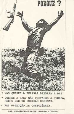 Maqueta de uma publicação do Grupo Eco-lógico; publicação e cartaz com a mesma imagem de um grupo de objectores de consciência.