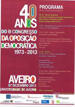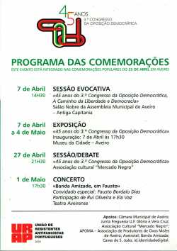 Agradeço a Jorge Henriques o envio de um largo conjunto de documentação relativa ao 3º Congresso da Oposição Democrática (Aveiro, 1973) e às comemorações do seu 40º e 45º aniversário na cidade de Aveiro.