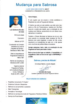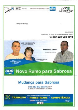 ELEIÇÕES AUTÁRQUICAS DE 2017 – SABROSA – FREGUESIA DE SABROSA – CDU 08/07/2018 JPP 2017, 2017 - Eleições Autárquicas, ARQUIVO, Panfletos - folhetos - folhas volantes - prospectos tarjetas, Processos eleitorais, Sabrosa, Sabrosa_ 0 Print (Opens in new window) Print Email a link to a friend (Opens in new window) Email Share on Facebook (Opens in new window) Facebook Share on X (Opens in new window) X Share on LinkedIn (Opens in new window) LinkedIn Like this:Like Loading...