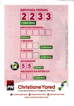 BRASIL – ELEIÇÕES GERAIS DE 2018 – PARANÁ – DEPUTADO FEDERAL – PARTIDO DA REPÚBLICA (PR) – CHRISTIANE YARED 09/10/2018 JPP 2018, 2018 - Brasil - Eleições, ARQUIVO, Autocolantes, Brasil, Paraná, Partido da República, Processos eleitorais, Santinhos 0 Autocolante Santinho Panfleto Print (Opens in new window) Print Email a link to a friend (Opens in new window) Email Share on Facebook (Opens in new window) Facebook Share on X (Opens in new window) X Share on LinkedIn (Opens in new window) LinkedIn Like this:Like Loading...