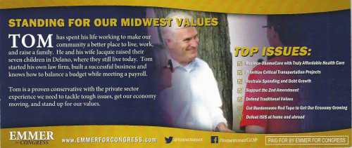 Thank you Congressman Tom Emmer for sending us your campaign materials and congratulations on your election.