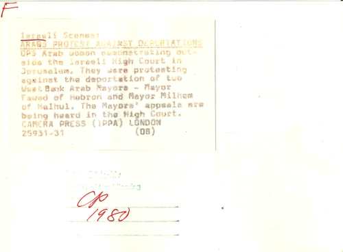 ISRAEL – PROTESTO CONTRA A DEPORTAÇÃO DE AUTARCAS ÁRABES (1980) 25/12/2018 JPP 1980, ARQUIVO, Fotografias, Israel, Manifestações protestos, Palestina 0 Print (Opens in new window) Print Email a link to a friend (Opens in new window) Email Share on Facebook (Opens in new window) Facebook Share on X (Opens in new window) X Share on LinkedIn (Opens in new window) LinkedIn Like this:Like Loading...