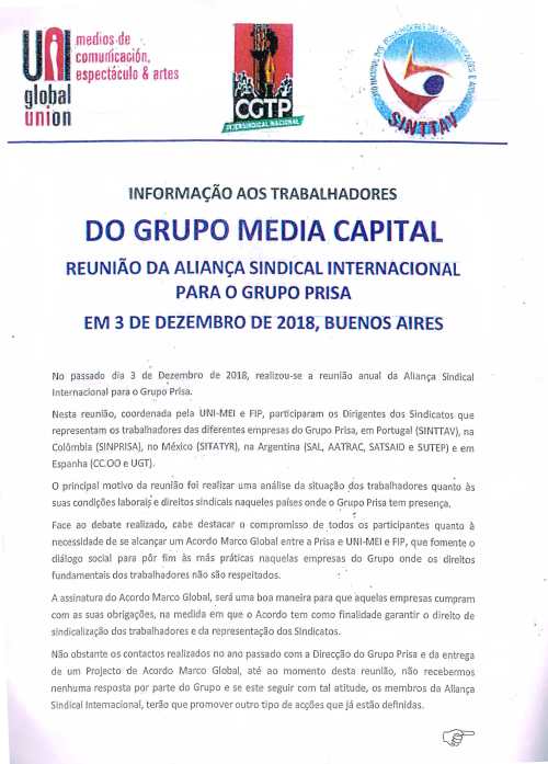 ALIANÇA SINDICAL INTERNACIONAL PARA O GRUPO PRISA / CGTP / SINTTAV JPP 7 anos ago Print (Opens in new window) Print Email a link to a friend (Opens in new window) Email Share on Facebook (Opens in new window) Facebook Share on X (Opens in new window) X Share on LinkedIn (Opens in new window) LinkedIn