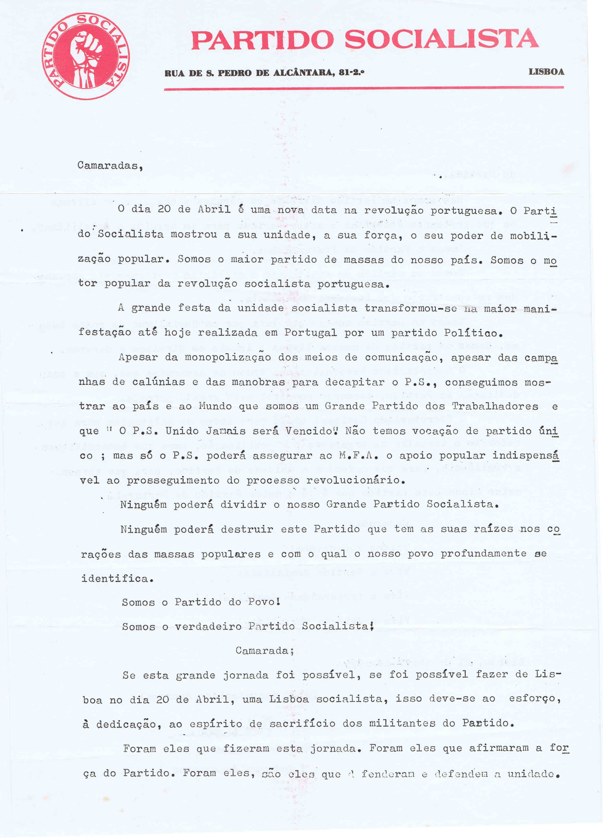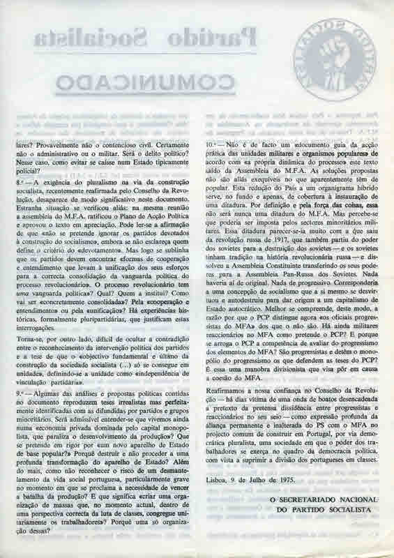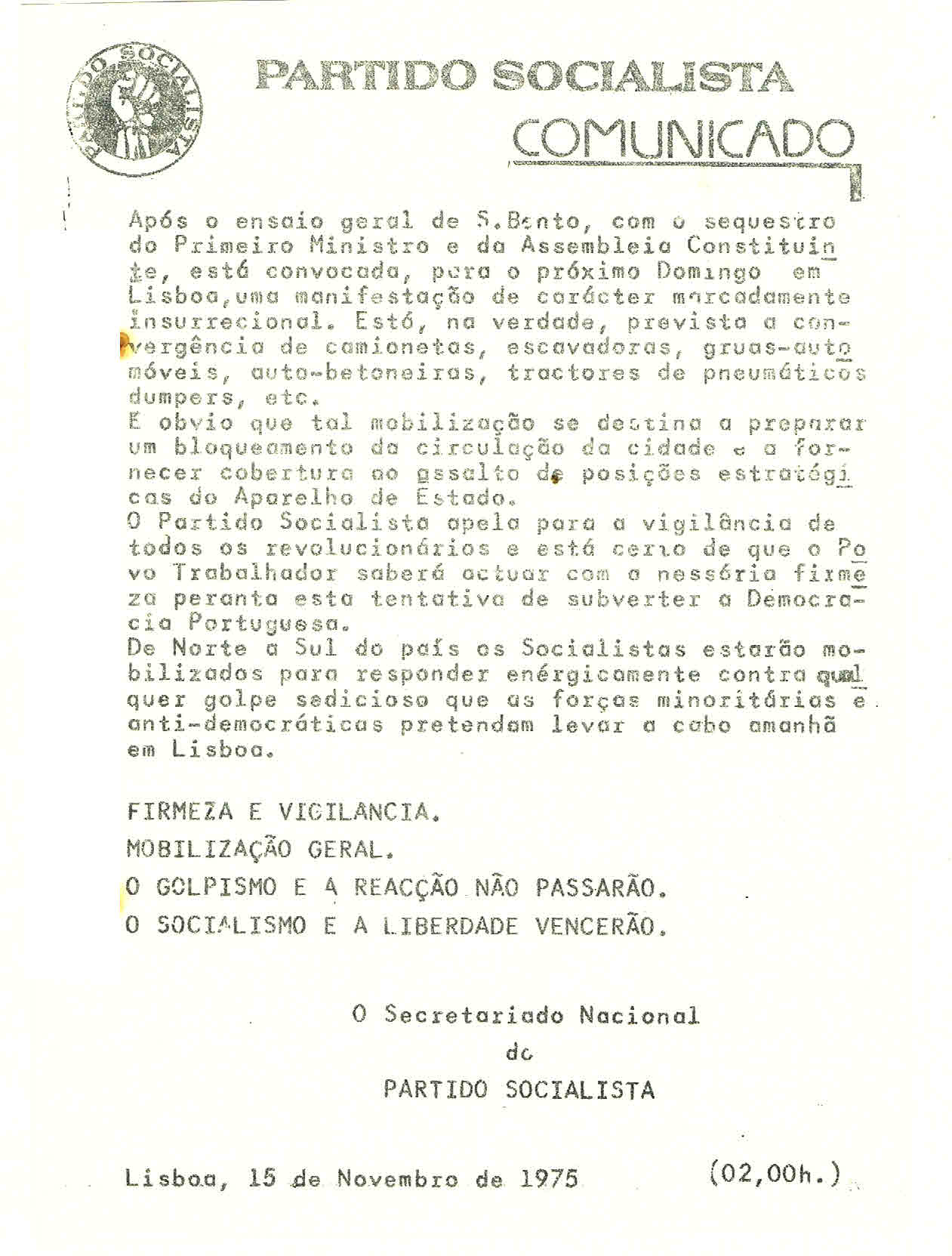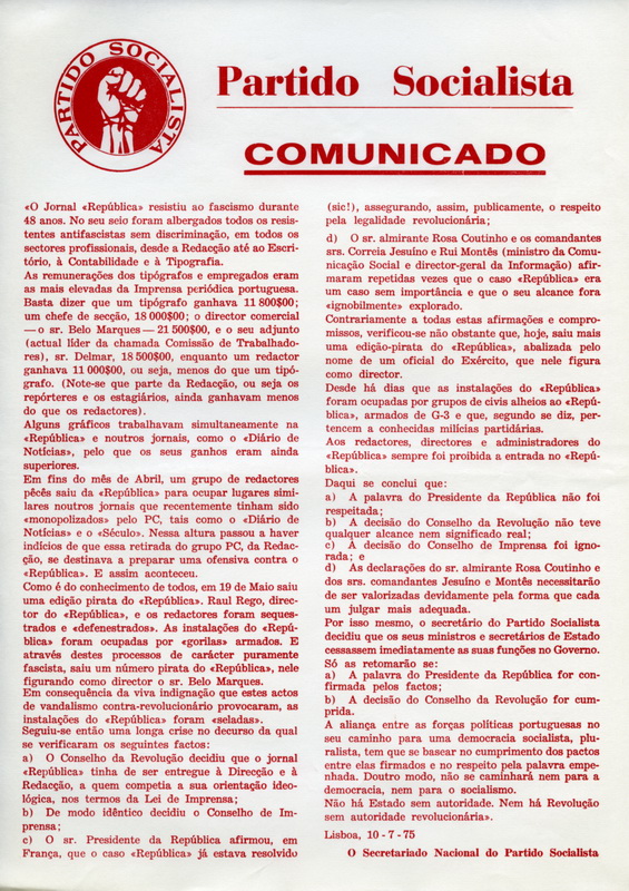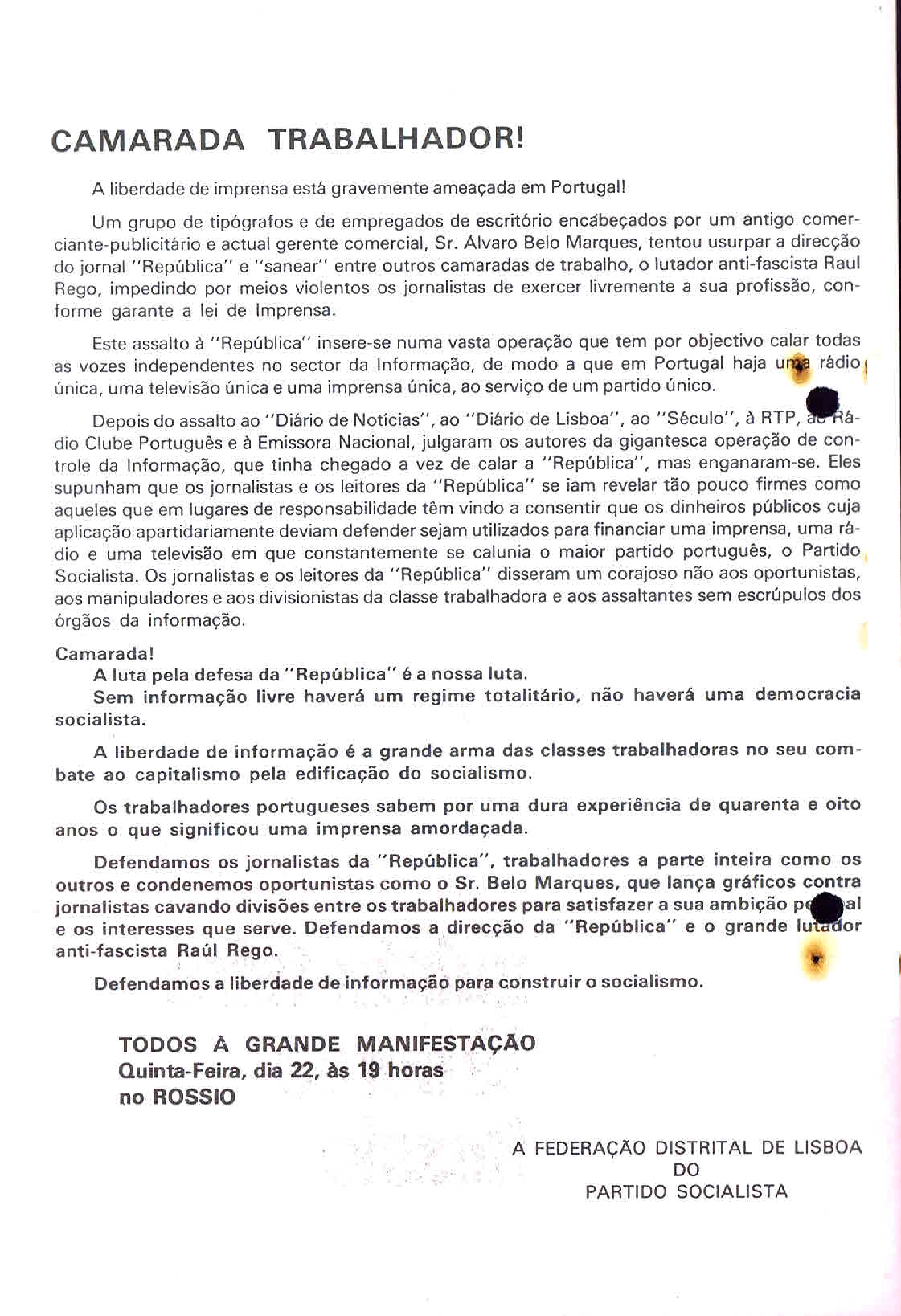 PS – MANIFESTAÇÃO CONTRA A OCUPAÇÃO DO REPÚBLICA (LISBOA, 22 DE MAIO DE 1975)