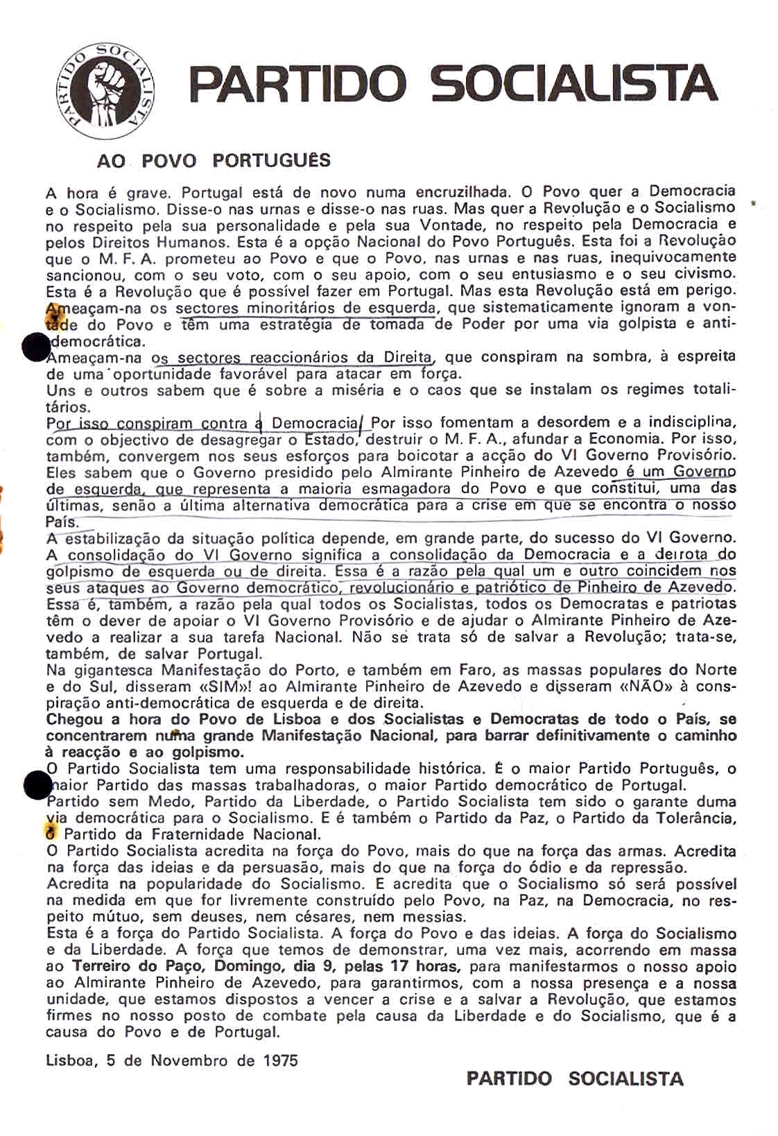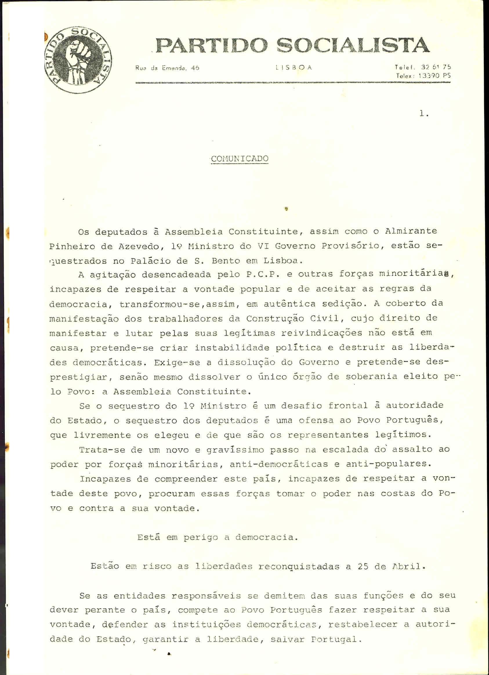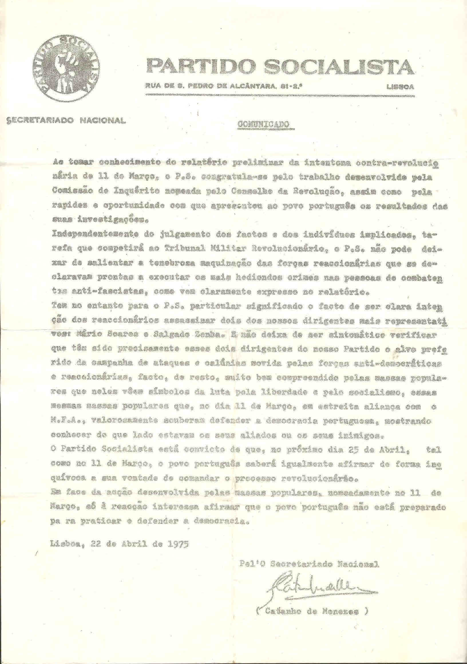PS – MANIFESTAÇÃO CONTRA A OCUPAÇÃO DO REPÚBLICA (LISBOA, 22 DE MAIO DE 1975)