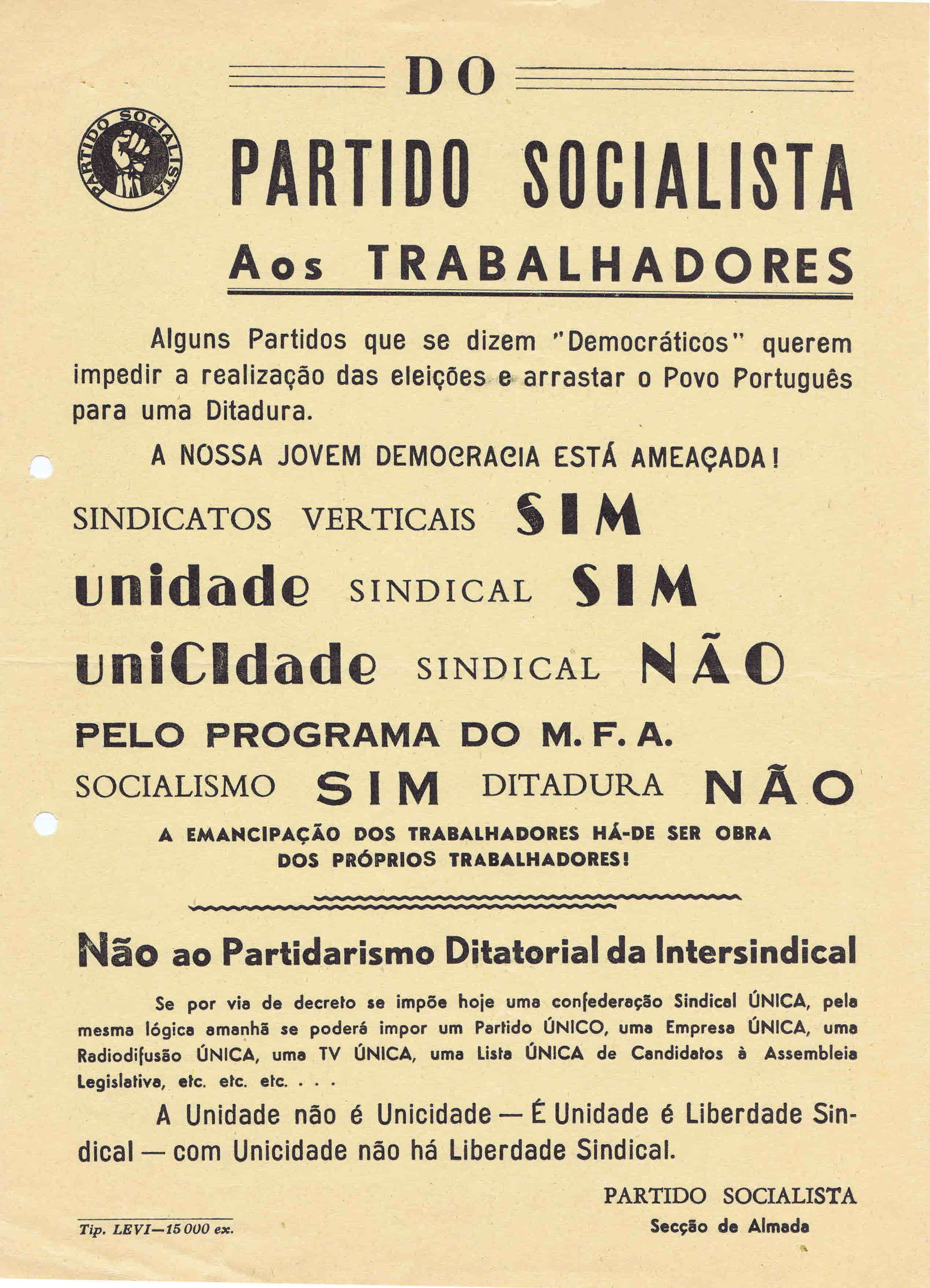 PS – 1º ENCONTRO NACIONAL DOS BANCÁRIOS SOCIALISTAS (LISBOA, 8-9- DE MARÇO DE 1975)
