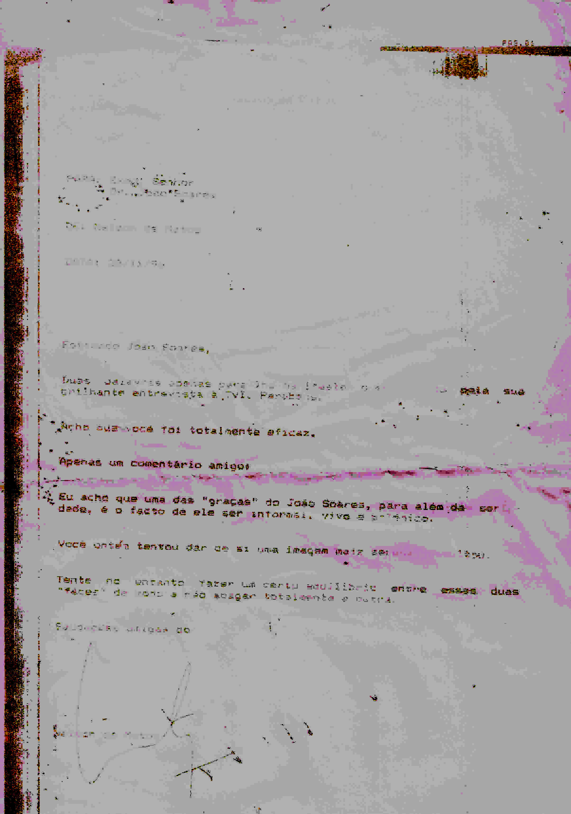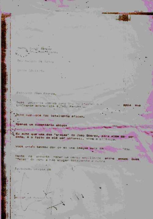 O que foi possível recuperar de um fax quase invisível (Acervo João Soares) manipulando a imagem digital.