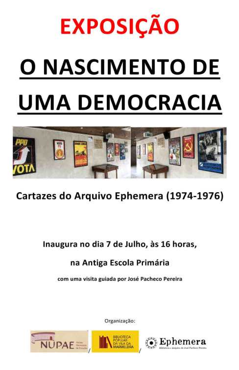 O NASCIMENTO DE UMA DEMOCRACIA – CARTAZES DO ARQUIVO EPHEMERA (1974-1976) NA VILA DA MARMELEIRA (7 DE JULHO DE 2019) 10/07/2019 JPP EPHEMERA na Vila da Marmeleira, Exposições, Newsletter, _NOTÍCIAS DO ARQUIVO E DA BIBLIOTECA 0 Print (Opens in new window) Print Email a link to a friend (Opens in new window) Email Share on Facebook (Opens in new window) Facebook Share on X (Opens in new window) X Share on LinkedIn (Opens in new window) LinkedIn Like this:Like Loading...
