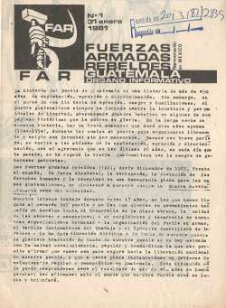 | | FUERZAS ARMADAS REBELDES GUATEMALA | ORGANO INFORMATIVO | | 1 | 1981 | FUERZAS ARMADAS REBELDES GUATEMALA | GUATEMALA