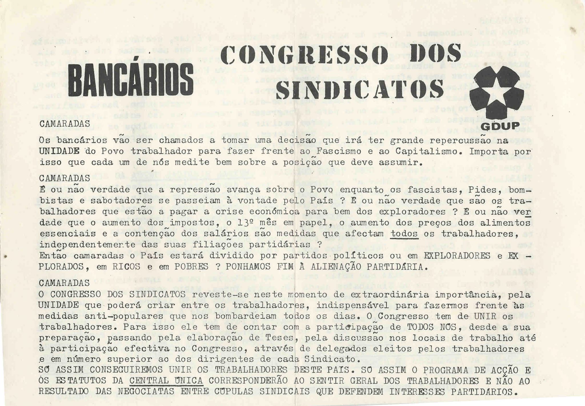 | | 1976/12/07 | | | | GDUP - COMISSÃO DE ZONA DOS BANCÁRIOS | | | |