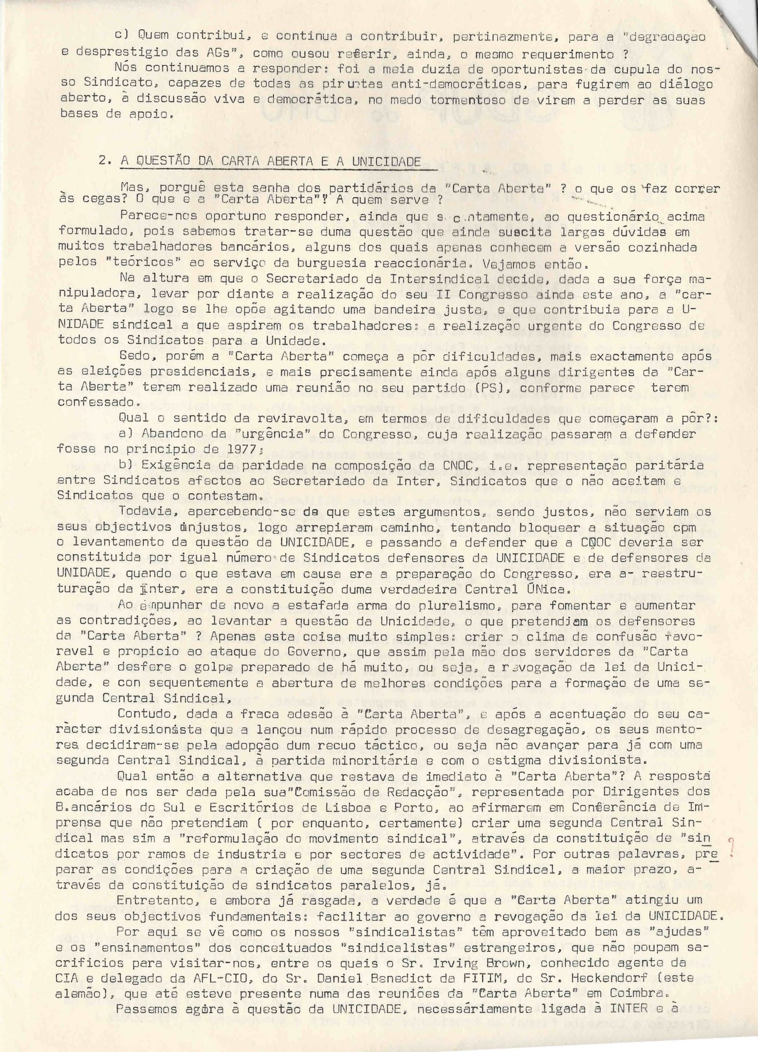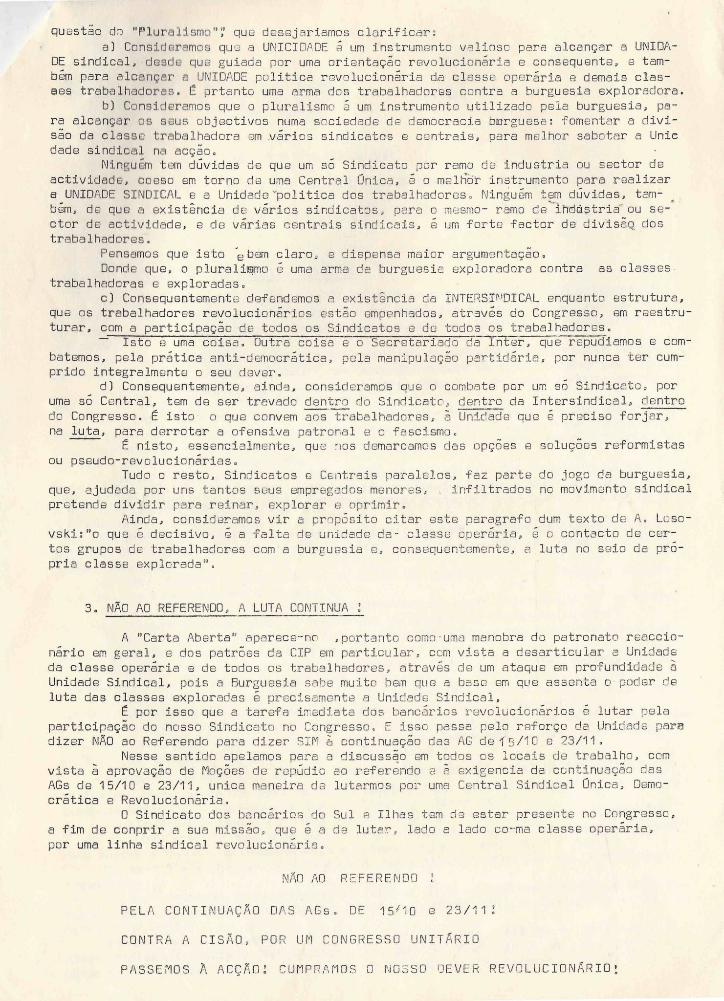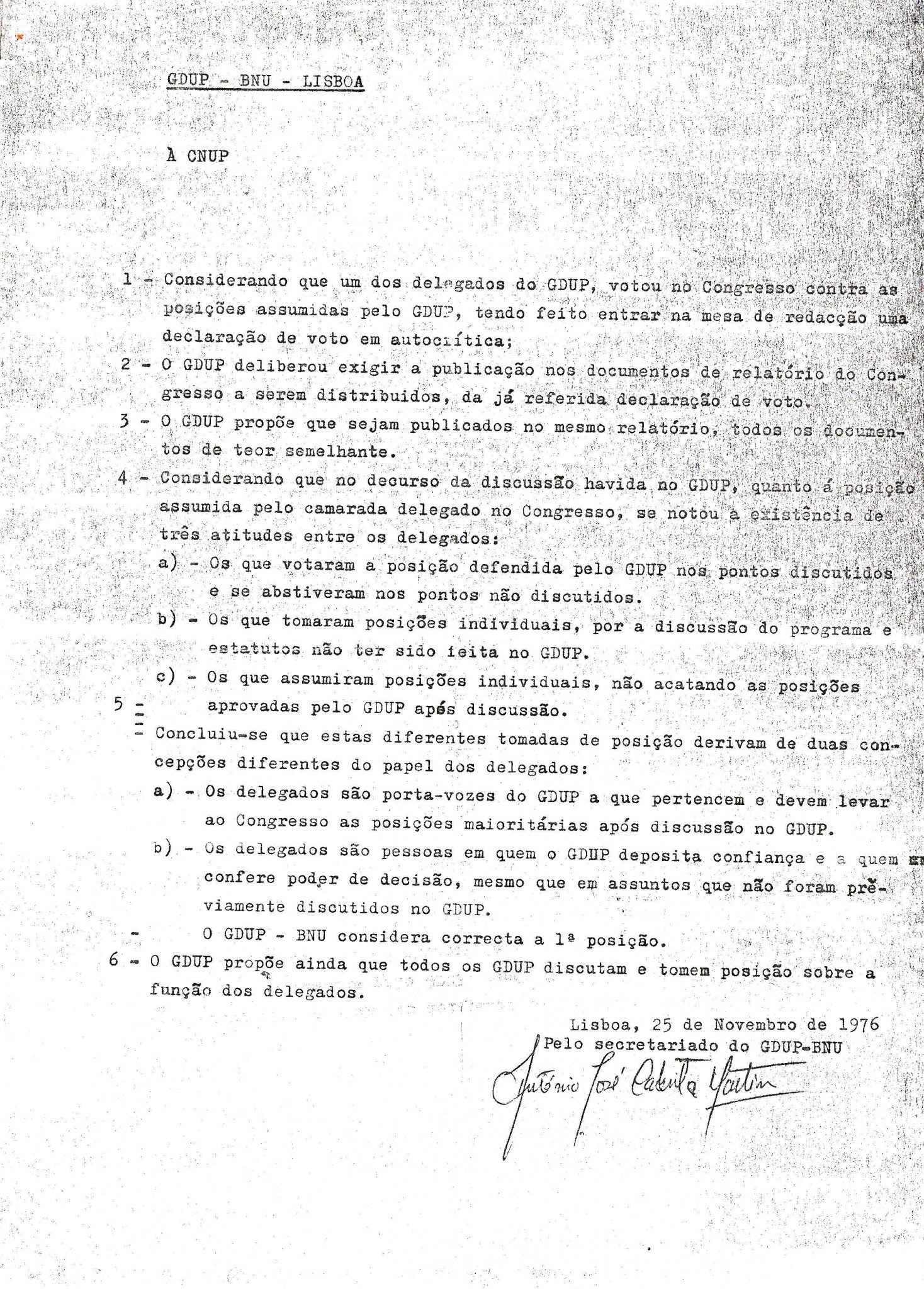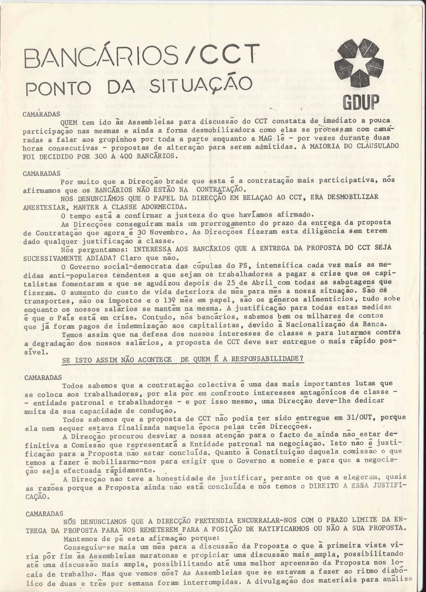 | | 1976/11/25 | | | | GDUP - COMISSÃO DE ZONA DOS BANCÁRIOS - BNU | | | |