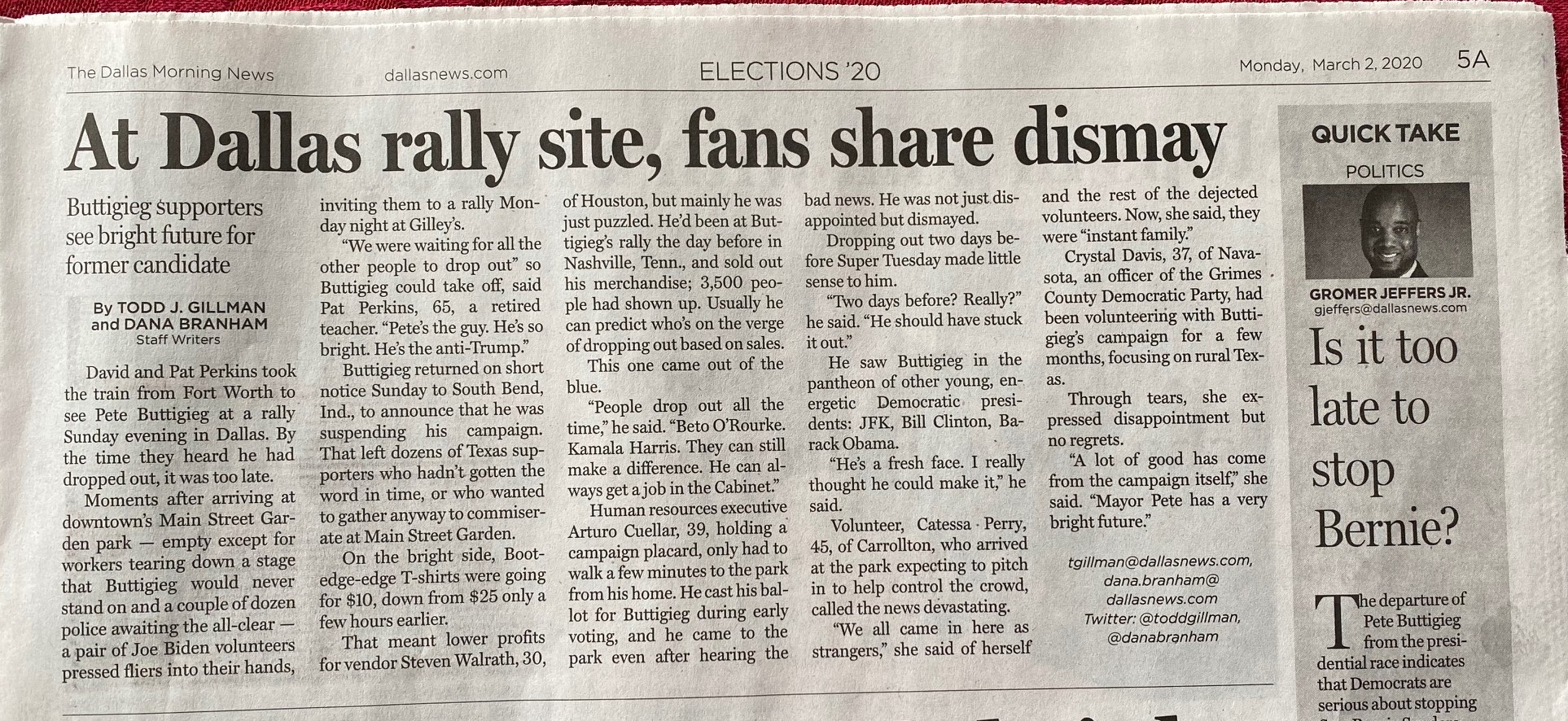 Já estava o comício a ser preparado pelos voluntários quando, de surpresa, Pete Buttigieg desistiu da candidatura.