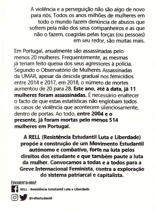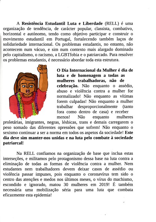RESISTÊNCIA ESTUDANTIL LUTA E LIBERDADE (RELL) 09/03/2020 JPP ARQUIVO, Feminismo, Panfletos - folhetos - folhas volantes - prospectos tarjetas, RESISTÊNCIA ESTUDANTIL LUTA E LIBERDADE (RELL) 0 Print (Opens in new window) Print Email a link to a friend (Opens in new window) Email Share on Facebook (Opens in new window) Facebook Share on X (Opens in new window) X Share on LinkedIn (Opens in new window) LinkedIn Like this:Like Loading...