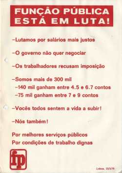 | | 1978/04/04 | | | | COMISSÃO NEGOCIADORA SINDICAL | | GREVE DA FUNÇÃO PÚBLICA | |