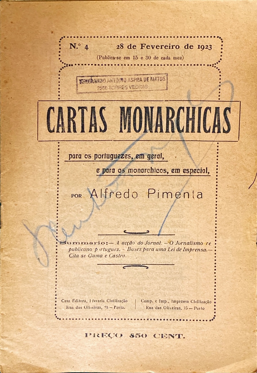 PANFLETOS, BROCHURAS E FOLHETOS – PORTUGAL – SÉC. XX (ATÉ 1926)
