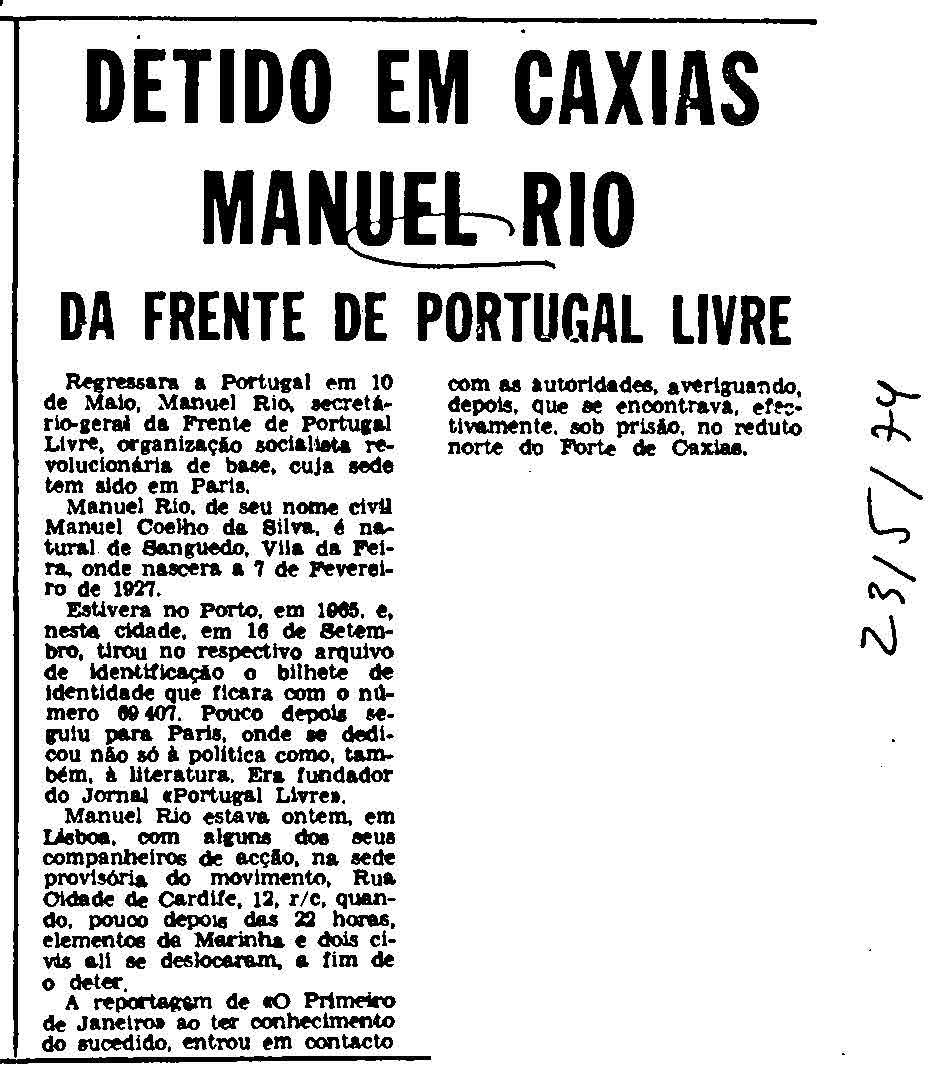 Mas quem se lembra da FPL exilada em Paris? A FPL nao foi so a detençao do Manuel Rio, como nao conheço o JPP, e nos anos 70 usava-mos falsos nomes entre militantes da FPL. JDSS