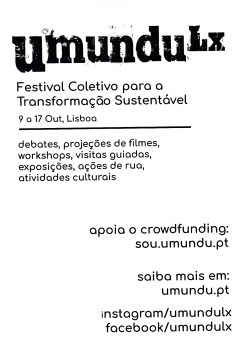 UMUNDU LX 29/09/2020 JPP ARQUIVO, Panfletos - folhetos - folhas volantes - prospectos tarjetas, UMUNDU - FESTIVAL COLECTIVO PARA A TRANSIÇÃO SUSTENTÁVEL 0 Print (Opens in new window) Print Email a link to a friend (Opens in new window) Email Share on Facebook (Opens in new window) Facebook Share on X (Opens in new window) X Share on LinkedIn (Opens in new window) LinkedIn Like this:Like Loading...