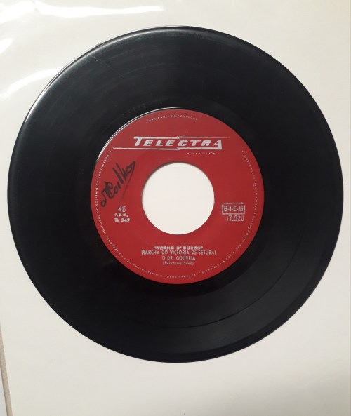 Neste caso falamos de uma deliciosa pérola: um disco em vinil com a gravação da Marcha do Vitória de Setúbal executada por um trio musical chamado “Terno d´Ouros”.