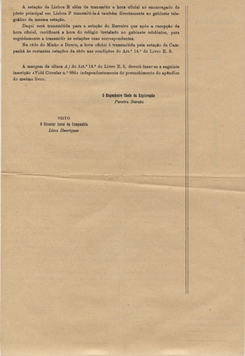 Nela se ordena que, “para obter a maior uniformidade e exactidão nas horas marcadas pelos relógios das estações, a transmissão da hora oficial, nas estações da Antiga Rede dotadas de telefones selectores, passa a ser feita, a partir de 1 de Setembro próximo, do seguinte modo: