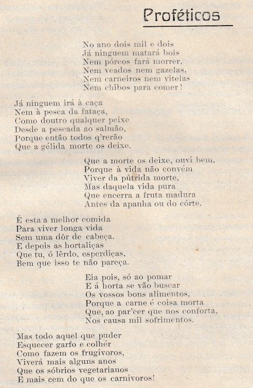 Poema anónimo na edição inaugural, de 1913, do Almanaque Vegetariano Ilustrado de Portugal e Brasil. Do acervo do Núcleo de Gastronomia do Arquivo Ephemera.