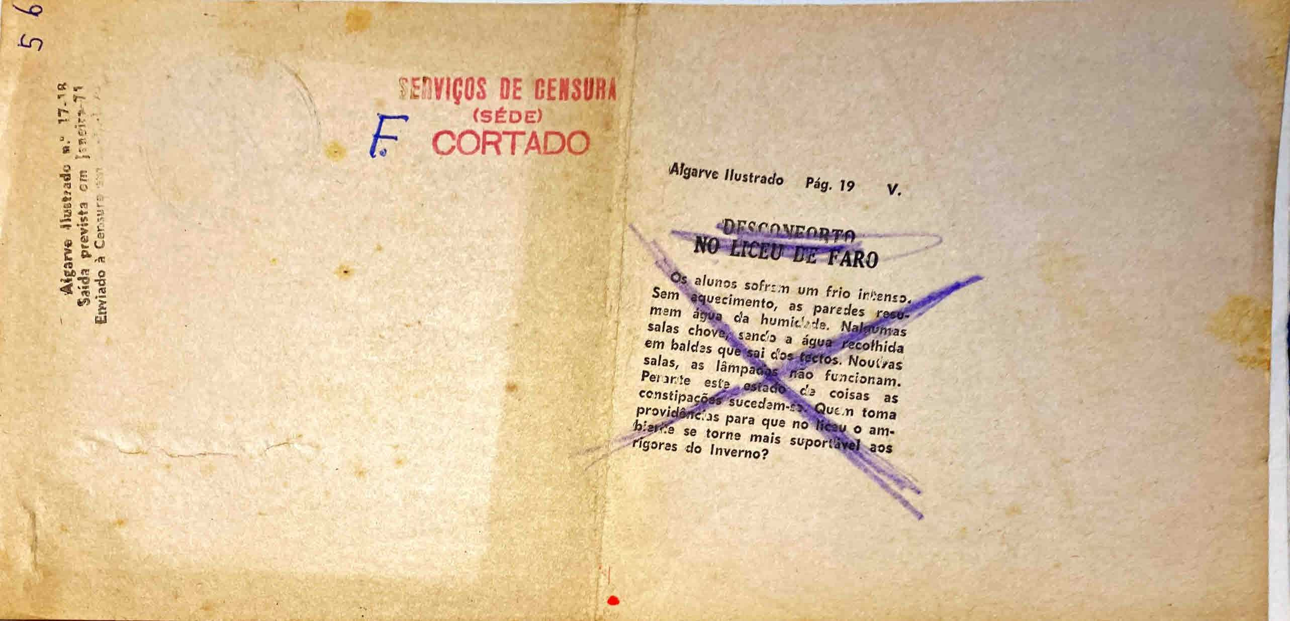 Cortes da Censura em provas do Algarve Ilustrado.