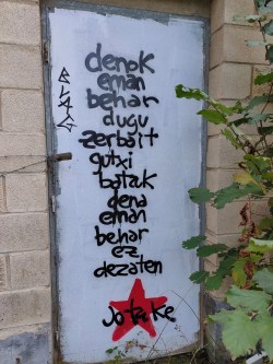 ESPANHA – PAÍS BASCO – RUAS E PAREDES DE LLODIO-LAUDIO (ÁLAVA-ARABA) – (OUTUBRO DE 2020 / FEVEREIRO DE 2021) 15/02/2021 JPP 2020, 2021, ARQUIVO, Álava/Araba, Espanha, Fotografias, Grafito - grafiti, Laudio/Llodio, Murais, País Basco, Poder local / regionalismo / separatismo / autonomias 0 (Fotografias de Ivan Perez Maza) Print (Opens in new window) Print Email a link to a friend (Opens in new window) Email Share on Facebook (Opens in new window) Facebook Share on X (Opens in new window) X Share on LinkedIn (Opens in new window) LinkedIn Like this:Like Loading...