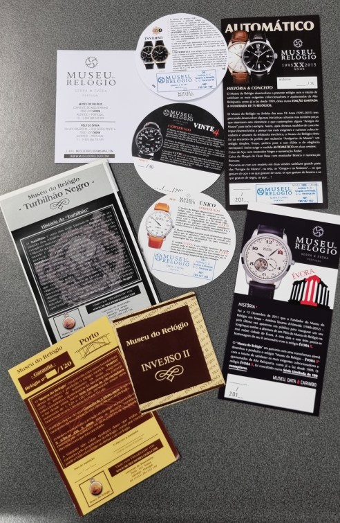 O Museu do Relógio tem produzido ao longo dos últimos 20 anos uma série de edições, quase todas hoje em dia esgotadas. Do seu Director, Eugénio Tavares de Almeida, acabámos de receber documentação relacionada com esses relógios. Vai para o Núcleo do Tempo do Arquivo Ephemera. Obrigado.