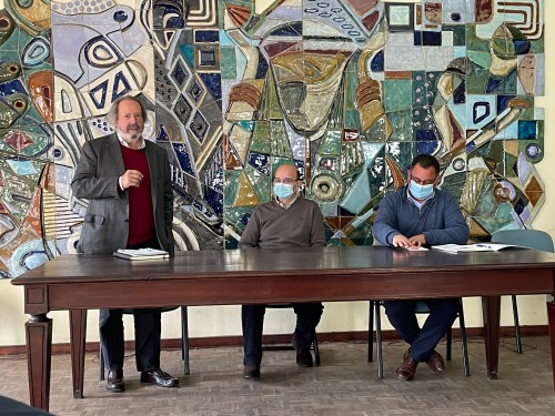 Cerimónia da assinatura do protocolo, na presença de membros da direcção (Vieira Nunes) e do Vice-Presidente da CM de Aveiro, Rogério Carlos, em representação do Presidente.