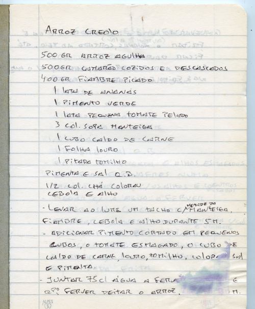 Ao Núcleo de Gastronomia chegaram agora 5 cadernos manuscritos com receitas de família. Pela letra ou pelo tipo de papel se vê que o registo abrange várias gerações. De um deles, e entre as muitas dedicadas ao omnipresente bacalhau, respigamos esta, pela sua originalidade: Bacalhau à D. Teresa.