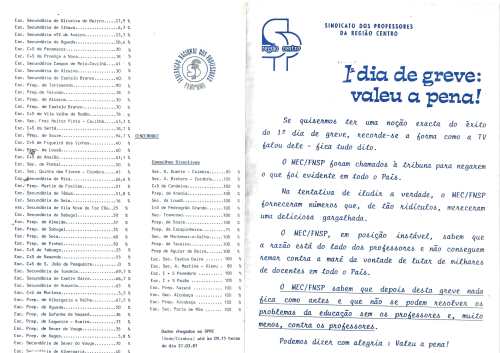 ![]() ![]() | 1987/03/27 | SINDICATO DOS PROFESSORES DA REGIÃO CENTRO | GREVE |