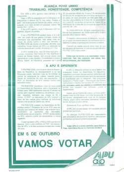 APU – 1985 17/06/2022 JPP 1985, ALIANÇA POVO UNIDO (APU), ARQUIVO, Panfletos - folhetos - folhas volantes - prospectos tarjetas 0 IMAGEM1IMAGEM2DATAAUTORTÍTULOBIOORGGEOEVENTONOTAS 1985/09APUgeral 1985/09/28APUgeral 1985/10/02APUgeral 1985/09/24APUgeral 1985APU PCP - DORLgeral 1985/10/06?APUgeral 1985/10/06APUgeral 1985/02APU PCPgeral 1985/07/18APUELEIÇÕES LEGISLATIVAS DE 1985 - APUgeral 1985/10/6APUgeral 1985/09APUgeral 1985APU PCPgeral Ver ELEIÇÕES LEGISLATIVAS DE 1985 – APU ELEIÇÕES AUTÁRQUICAS DE 1985 – APU Print (Opens in new window) Print Email a link to a friend (Opens in new window) Email Share on Facebook (Opens in new window) Facebook Share on X (Opens in new window) X Share on LinkedIn (Opens in new window) LinkedIn Like this:Like Loading...